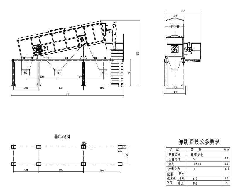 運(yùn)行垃圾分選彈跳篩前檢查:包括設(shè)備衛(wèi)生,各部位連接螺栓齊全、緊固、完好,檢查激振器是否完好,檢查各彈簧 有無(wú)損壞、缺少、斷裂等現(xiàn)象,檢查三角帶是否張緊有無(wú)斷裂篩箱、篩板有無(wú)損壞,檢查篩板有無(wú)雜物堵塞篩面要平整無(wú)損壞、松動(dòng)現(xiàn)象,檢查進(jìn)出料溜槽是否暢通檢查橫梁有無(wú)開(kāi)焊等現(xiàn)象,檢查安全防護(hù)裝置是否安全可靠,檢查控制箱、通訊、照明是否完好,接地保護(hù)是否可靠,控制按鈕是否靈活可靠。