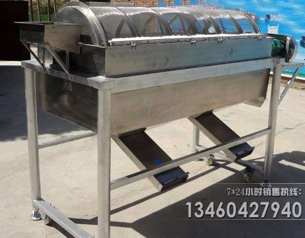 三、不銹鋼滾筒篩自帶料倉,料倉下部有扇形閘門,粗料段有溜槽可以將粗料直接送到運輸機械,便于工藝布置。圓回轉篩在汲取國內(nèi)外同類產(chǎn)品各項優(yōu)點并經(jīng)多年實踐而發(fā)展起來的新型篩分設備。其透篩率高,特別適應粘濕物料的篩分,篩孔不易堵塞。