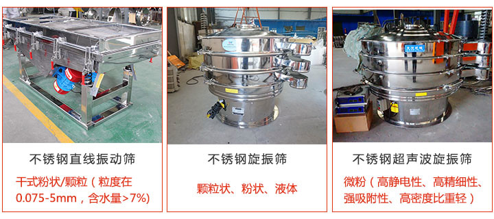 不銹鋼振動篩分機,顧名思義材質(zhì)為304、316等 不銹鋼材質(zhì)制造的篩機,它適用用于細粉、微粉、及干、濕物料,干凈衛(wèi)生耐腐蝕,是食品化工行業(yè)篩分機械。有那些種類